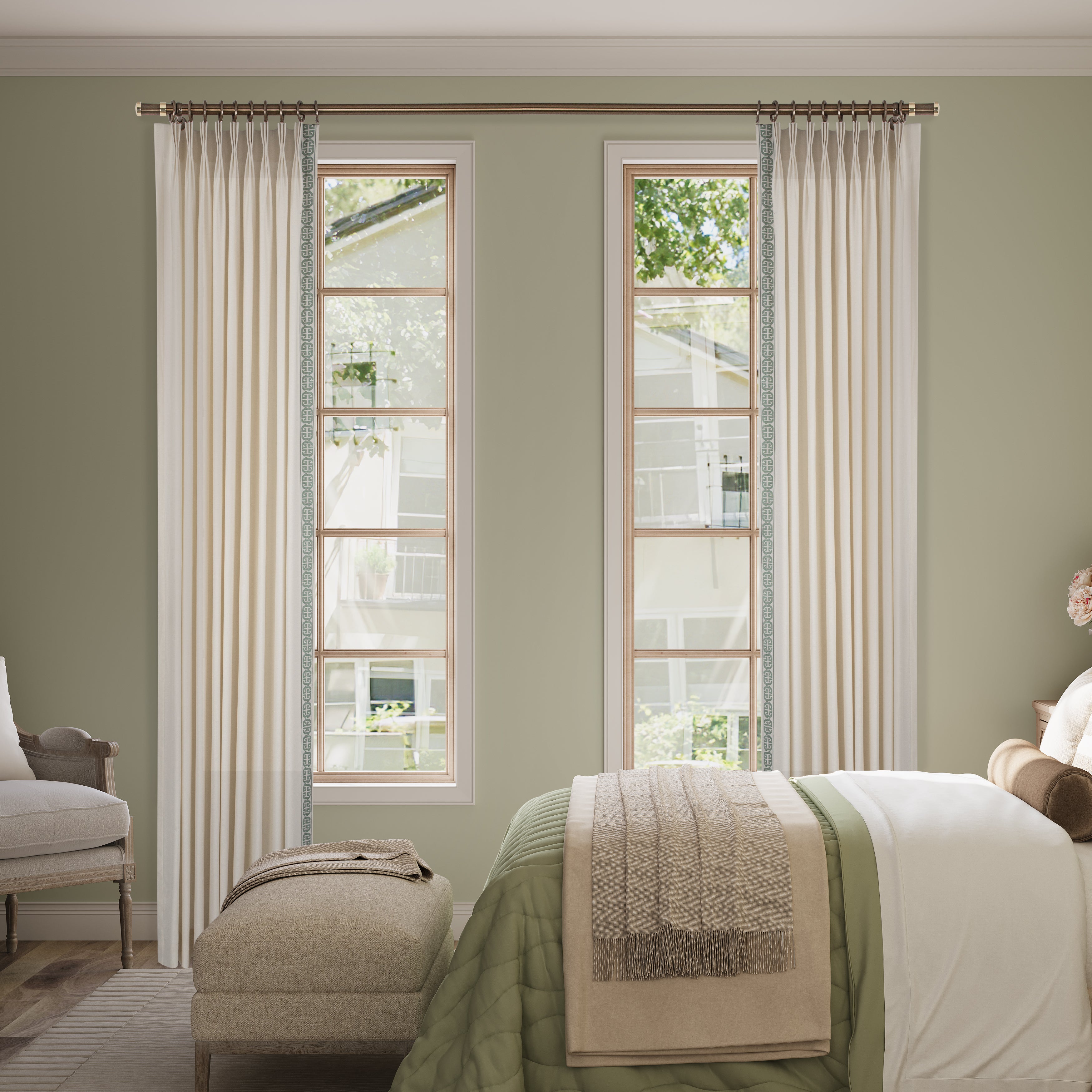 Sage Garden Border-Trim Custom Curtains